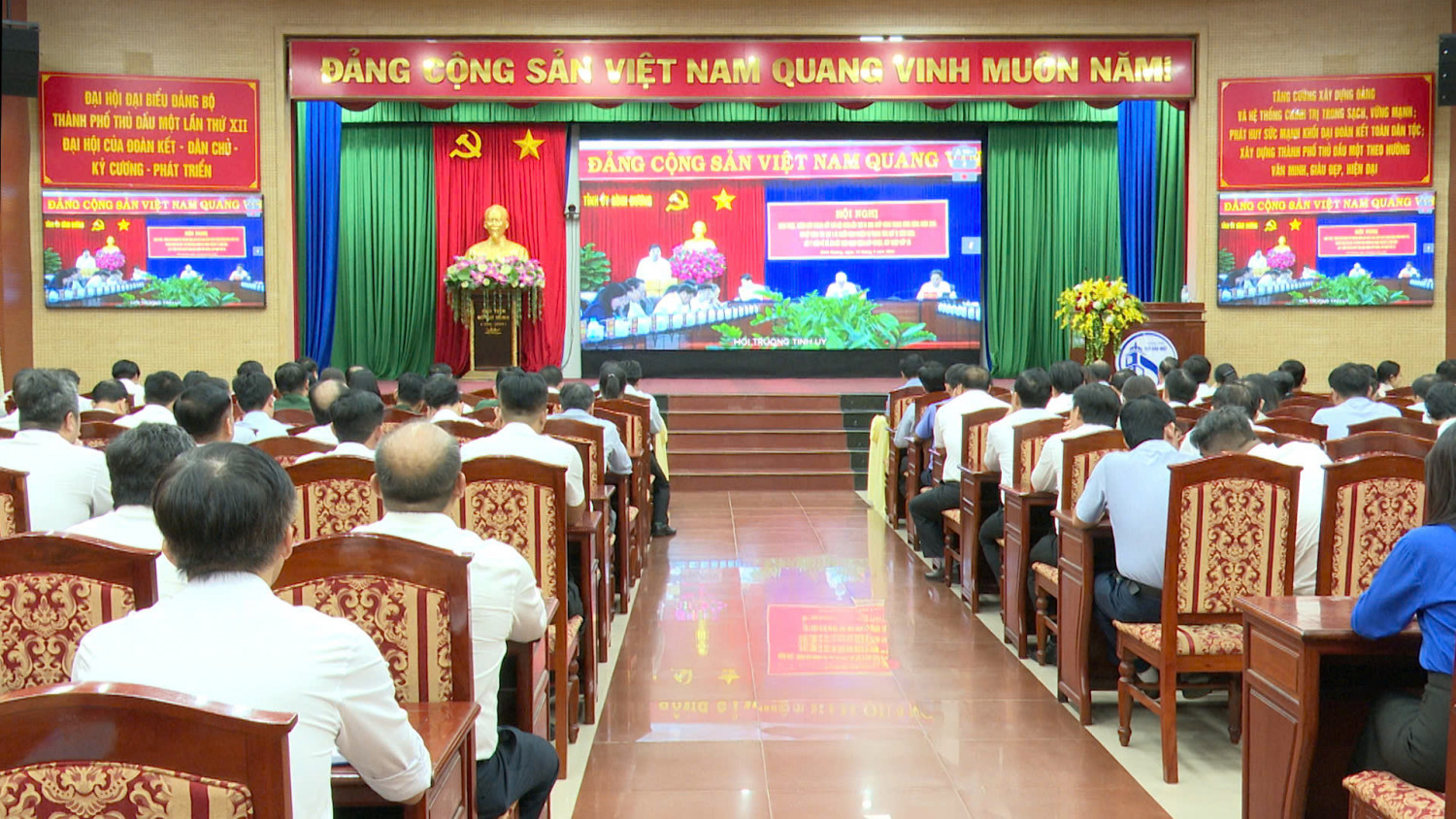 Chiều ngày 14/4, Tỉnh ủy Bình Dương đã tổ chức hội nghị Tỉnh ủy (mở rộng) quán triệt, thông báo nhanh kết quả Hội nghị Trung ương; sơ kết công tác quí 1 và triển khai nhiệm vụ trọng tâm quí 2 năm 2025; lấy ý kiến về Đề án kết thúc hoạt động cấp huyện, sáp nhập cấp xã. Hội nghị được tổ chức trực tiếp và trực tuyến đến các điểm cầu huyện, thành phố, xã phường, thị trấn trên địa bàn. Chủ trì hội nghị có đồng chí Nguyễn Văn Lợi- UV BCH Trung ương Đảng, Bí thư Tỉnh Uỷ, Trưởng đoàn đại biểu Quốc Hội tỉnh. Đồng chí Nguyễn Văn Đông- UVTV Tỉnh ủy, Bí thư Thành ủy đã chủ trì tại điểm cầu trực tuyến thành phố Thủ Dầu Một.