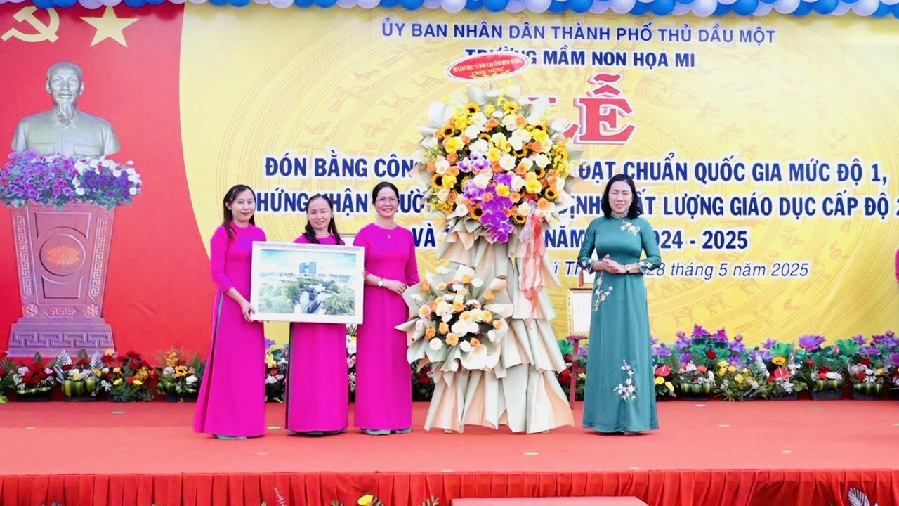 Sáng ngày 28/5, Trường Mầm non Họa Mi tổ chức Lễ đón bằng công nhận Trường đạt chuẩn Quốc gia mức độ 1 và kiểm định chất lượng giáo dục cấp độ 2 và Tổng kết năm học 2024-2025.