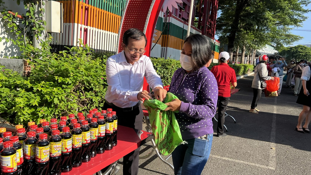 Tại phiên chợ, Hội chữ thập đỏ thành phố đã trao 100 phần quà, mỗi phần trị giá 500 ngàn đồng gồm sữa, gạo, mỳ gói, dầu ăn, đường, nước mắm, nước tương, rau củ quả… cho các hộ nghèo, có hoàn cảnh kinh tế gia đình khó khăn, người già neo đơn sinh sống trên địa bàn thành phố. Các phần quà do Hội chữ thập đỏ thành phố vận động cá nhân, tổ chức, cơ sở ủng hộ trao tặng.